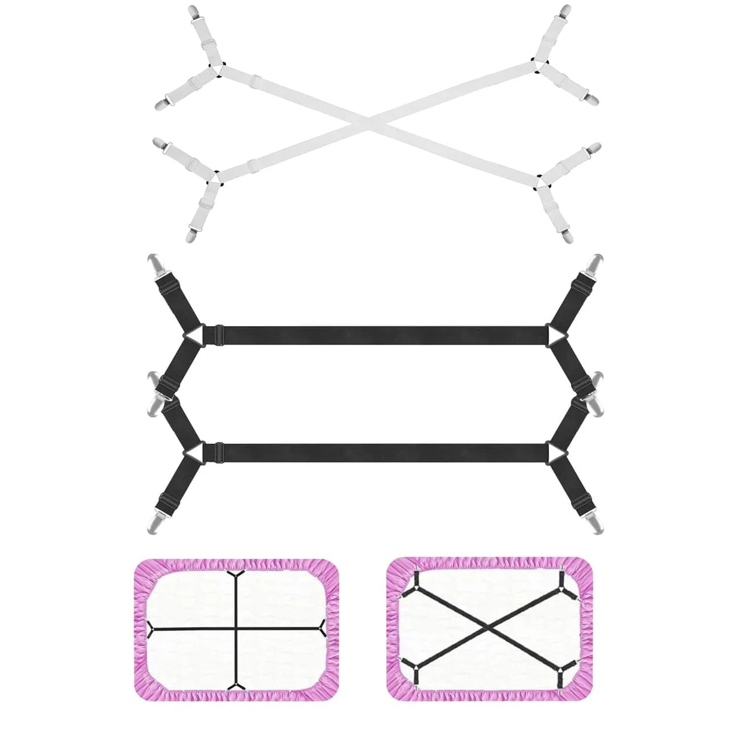 Elastyczne Pasy Mocujące do Prześcieradeł – 2-Elementowy Zestaw Regulowanych Krzyżowych Uchwytów